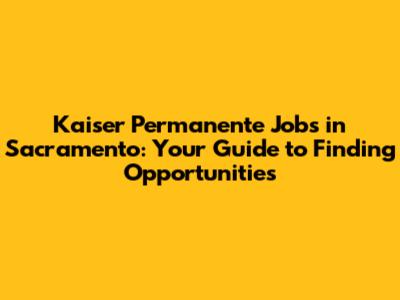 Finding Kaiser Permanente jobs in Sacramento can be a rewarding endeavor. By understanding the types of jobs available, knowing where to look, and preparing a strong application, you can increase your chances of landing a great job. Good luck with your job search!