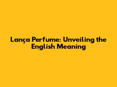 Lança Perfume: Unveiling The English Meaning